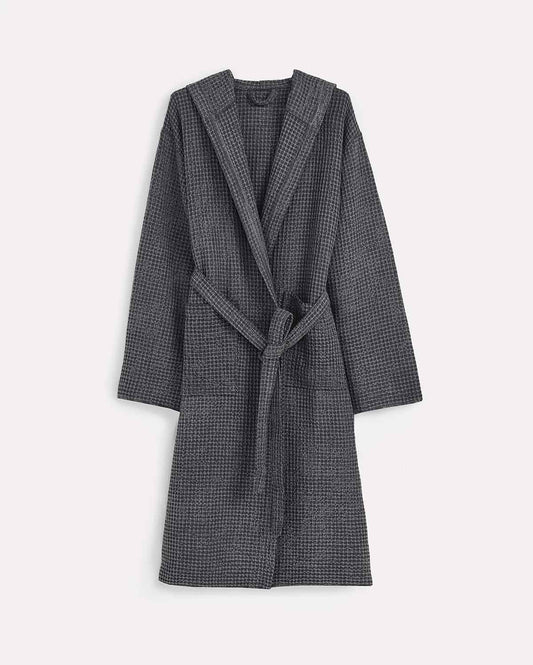 Hooded Washed Waffle Cotton Bathrobe - Grey