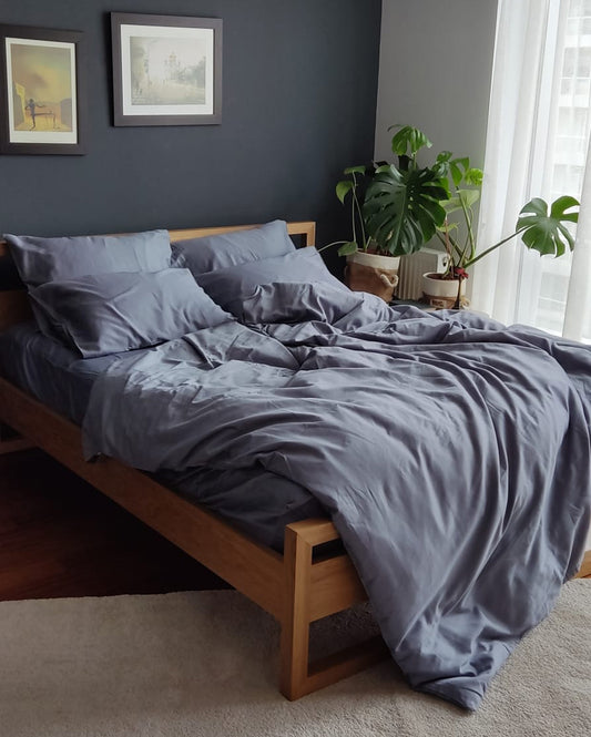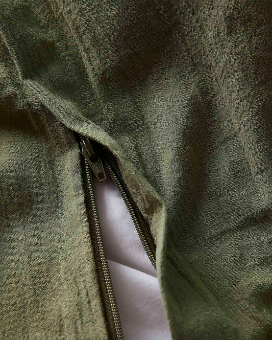 Sateen Stripe - Duvet Cover Set - Oil Green